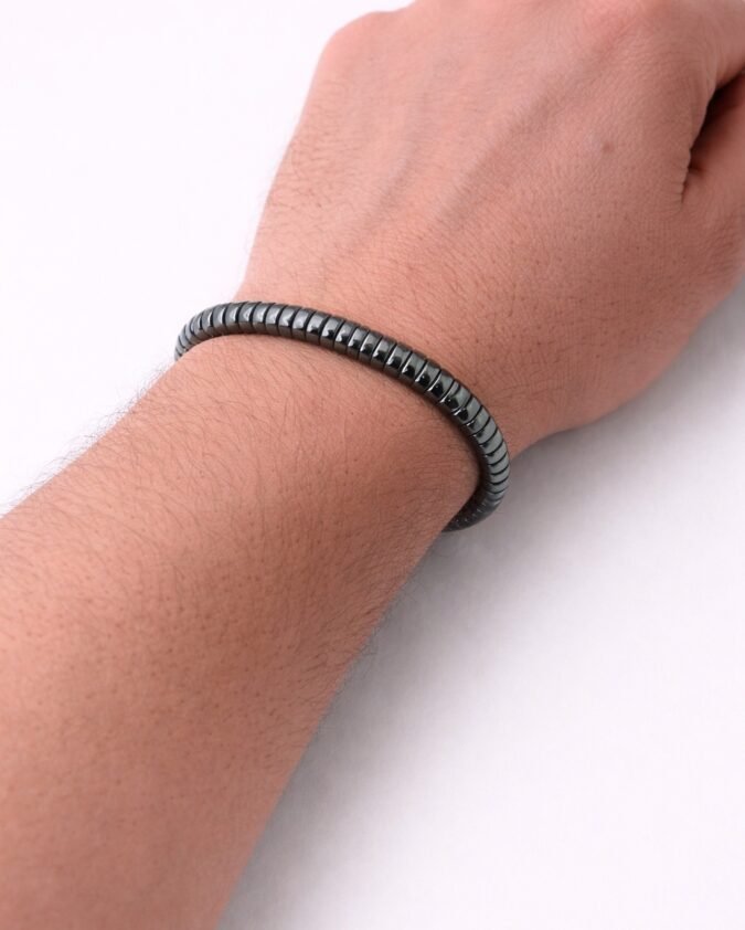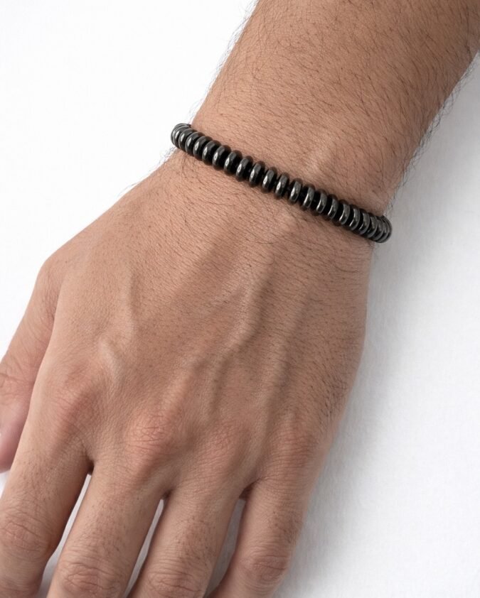 Men’s Black Stainless Steel Beaded Bracelet with Adjustable Chain-015