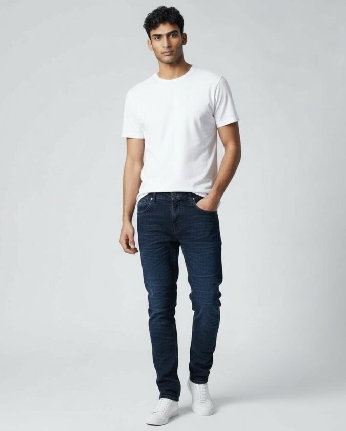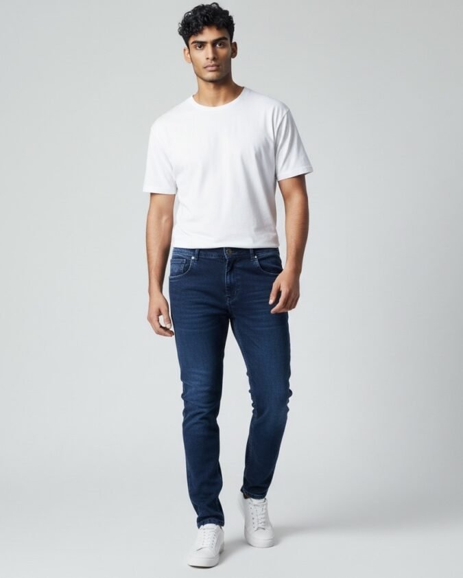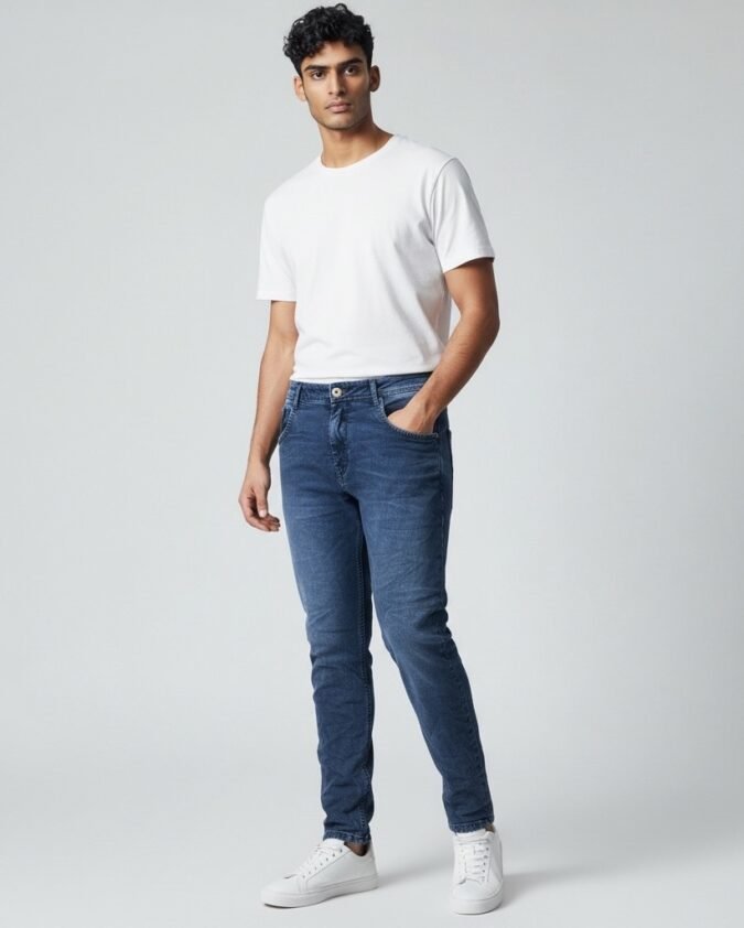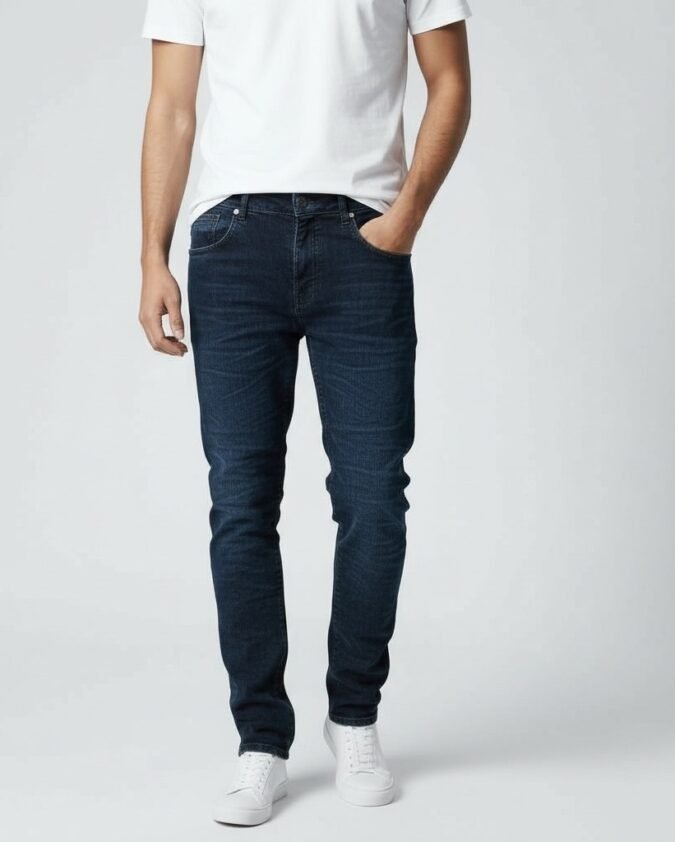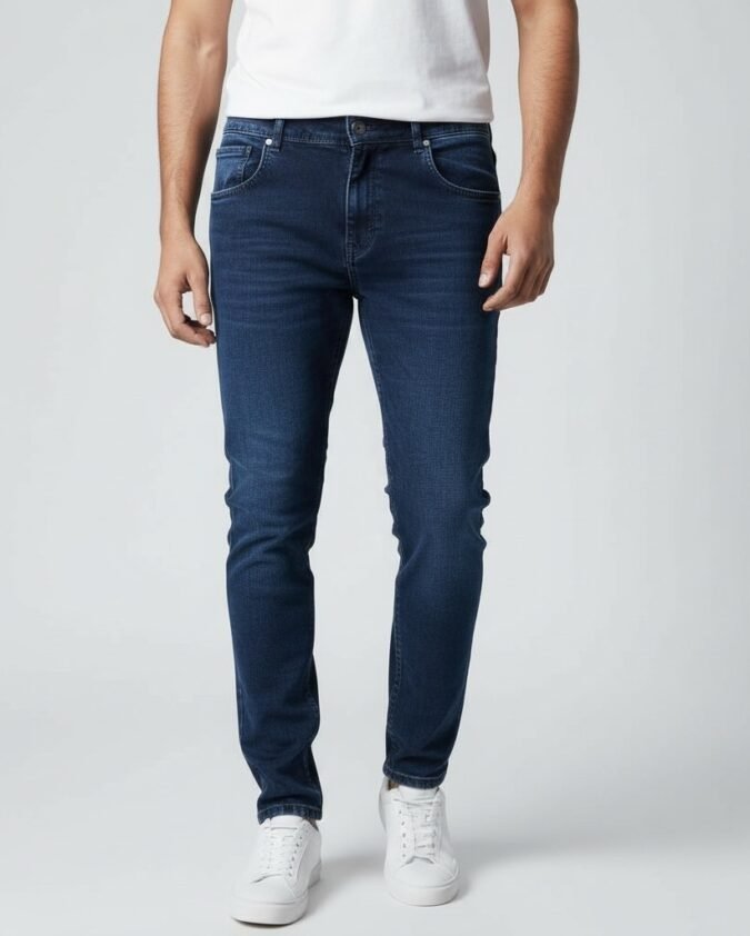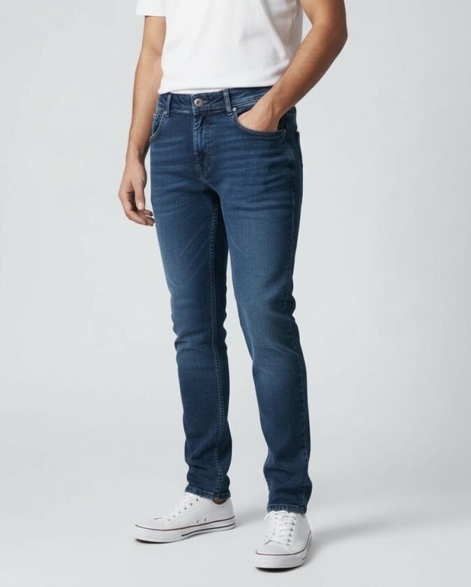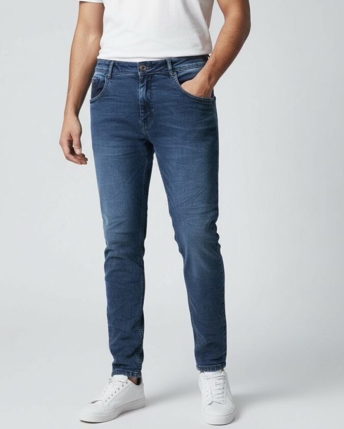 Men’s Panel Stitch Casual Blue Baggy Fit Jeans-001