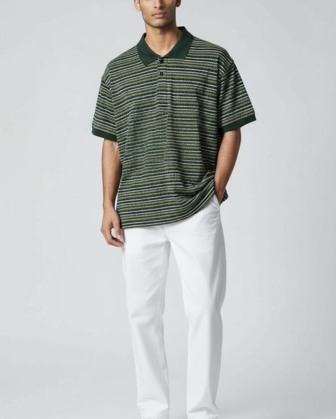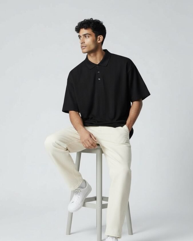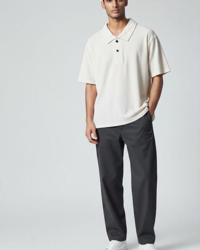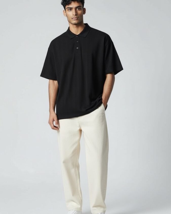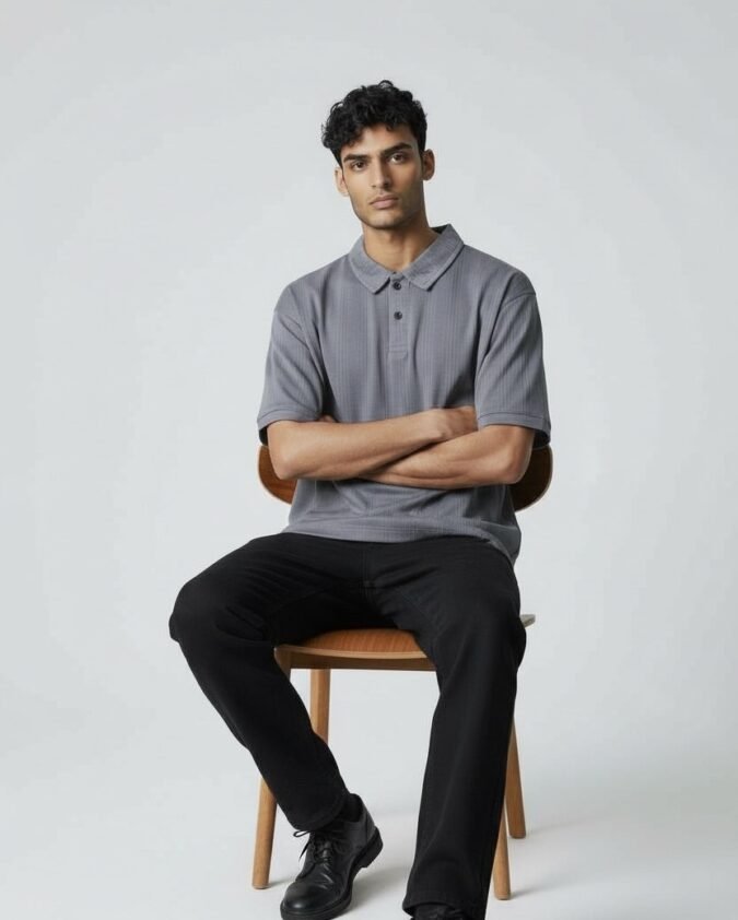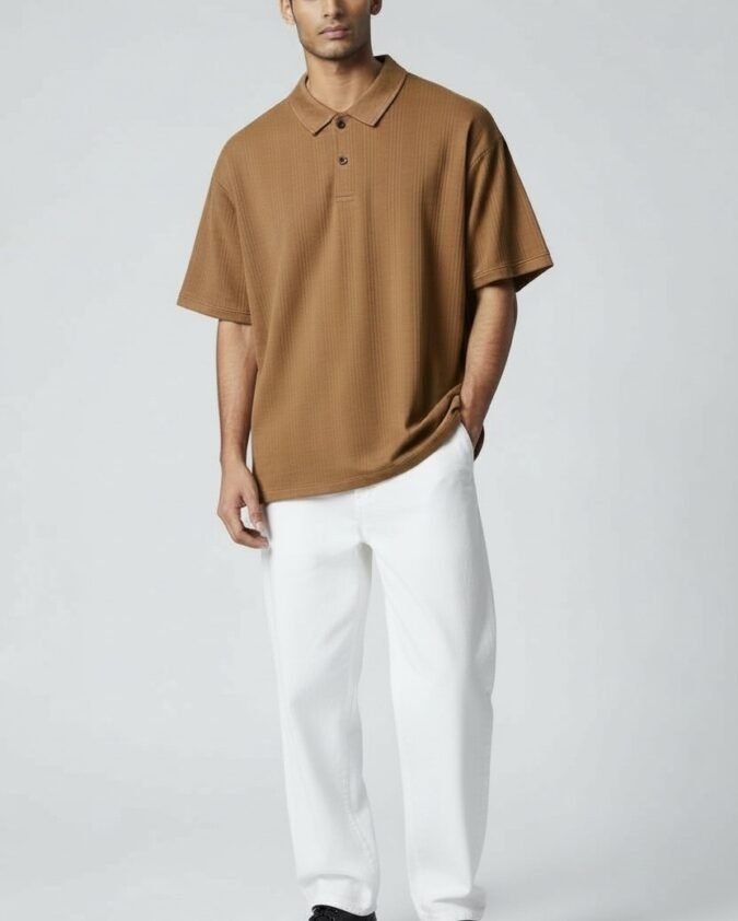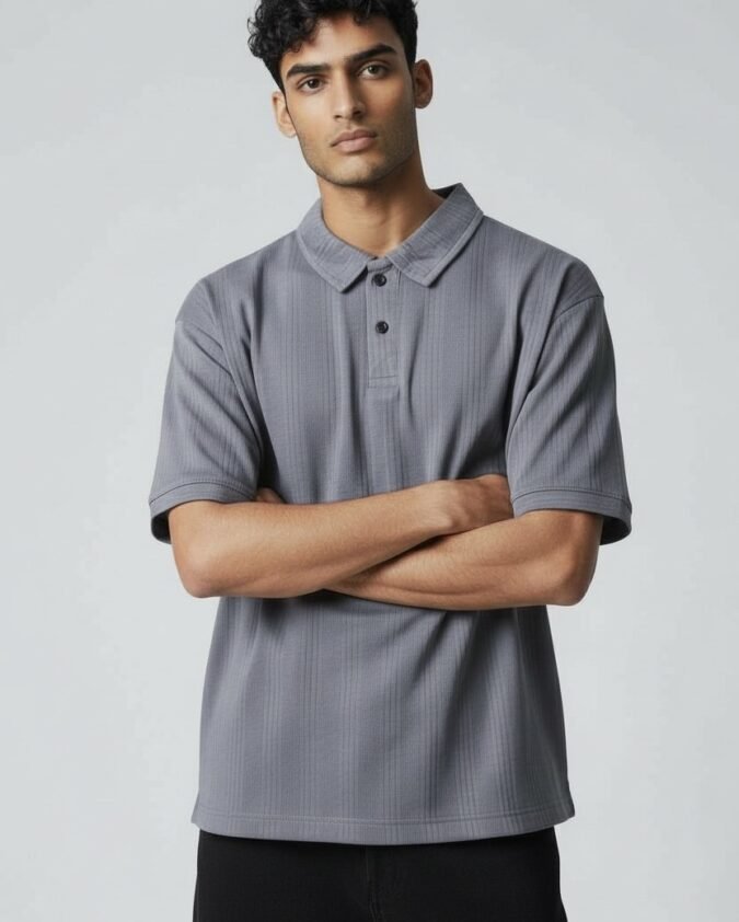 Men’s Ribbed Texture Polo Over Size T-Shirt –001