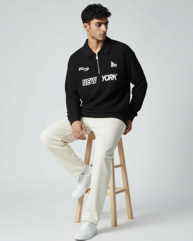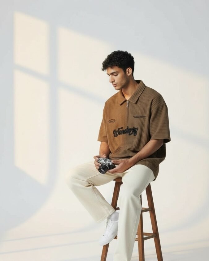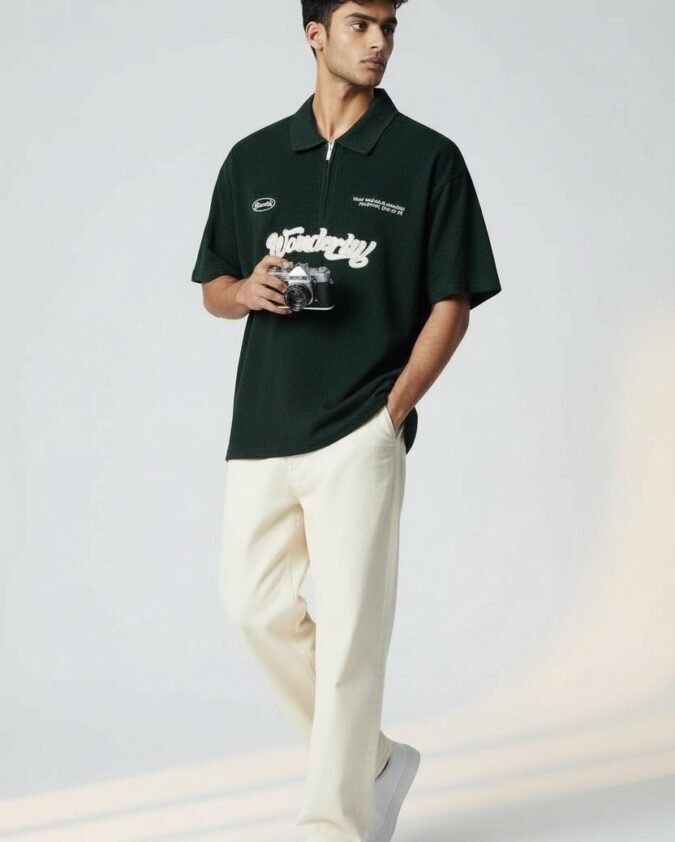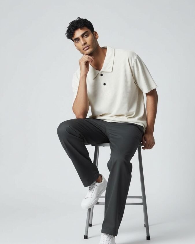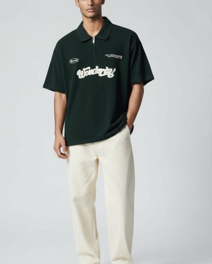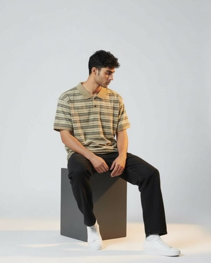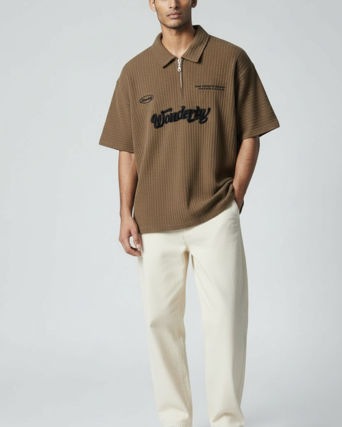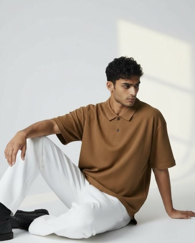 Men’s Ribbed Texture Polo Over Size T-Shirt –001