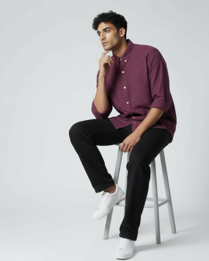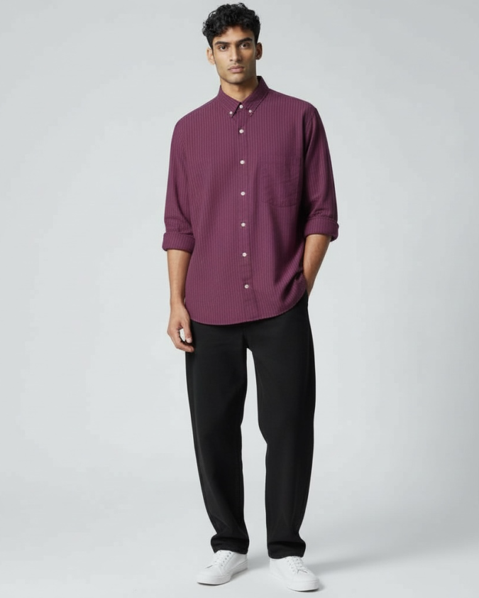 Men’s Deep Maroon Slim Fit Casual Shirt-L003