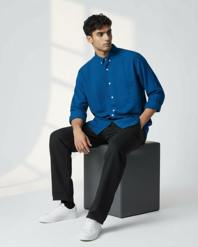 Men’s Deep Blue Textured Casual Shirt- L002
