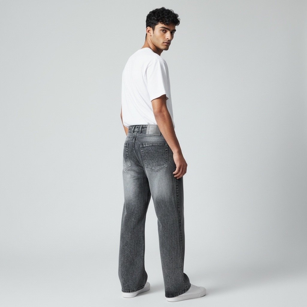 Men’s Dark Grey Baggy Fit Denim Jeans-002