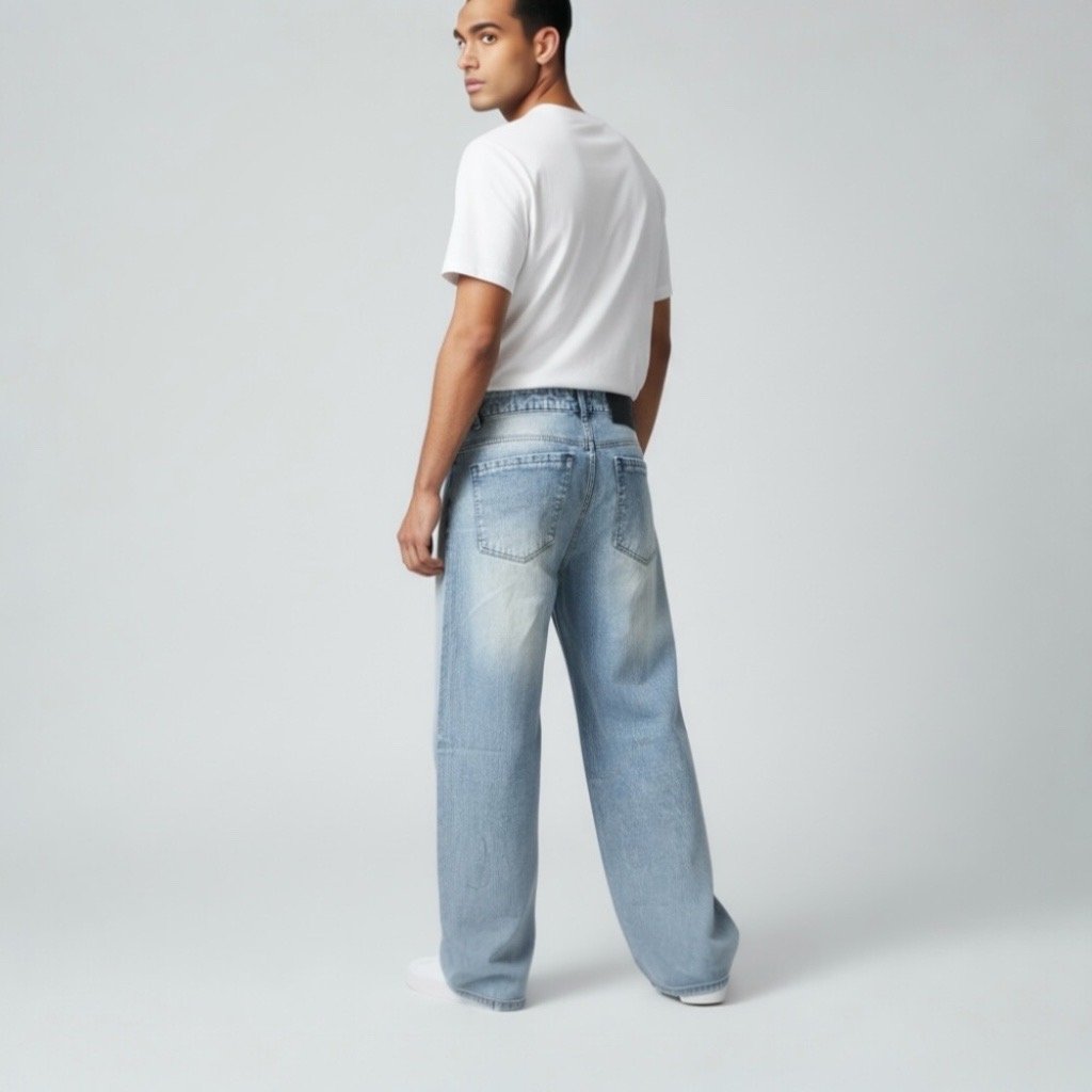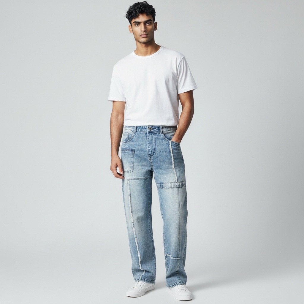 Men’s Panel Stitch Casual Blue Baggy Fit Jeans-001