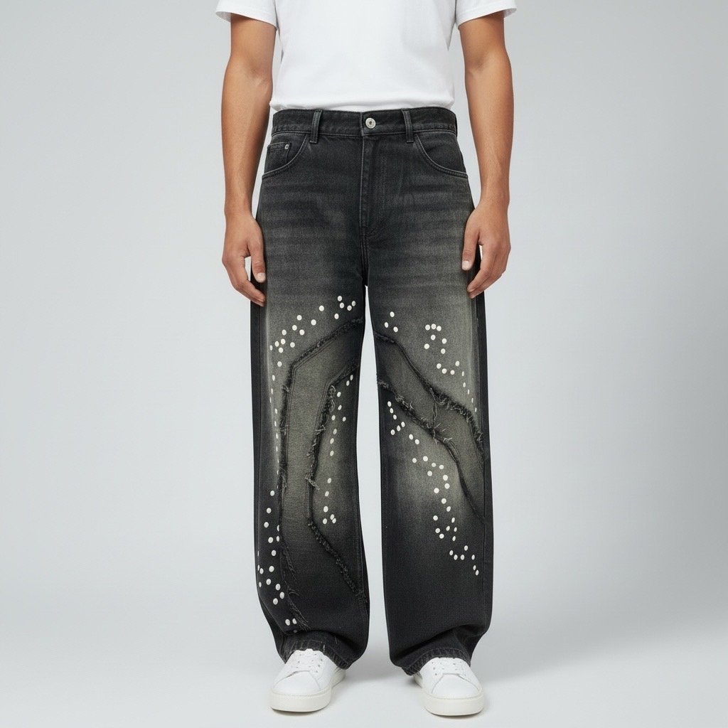Men’s Street Style Black Wide Leg Designer Jeans