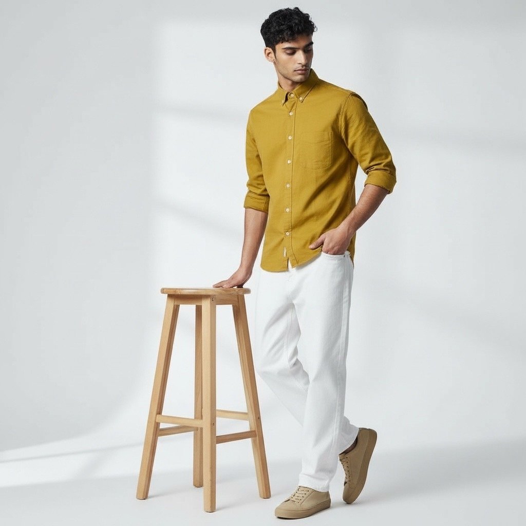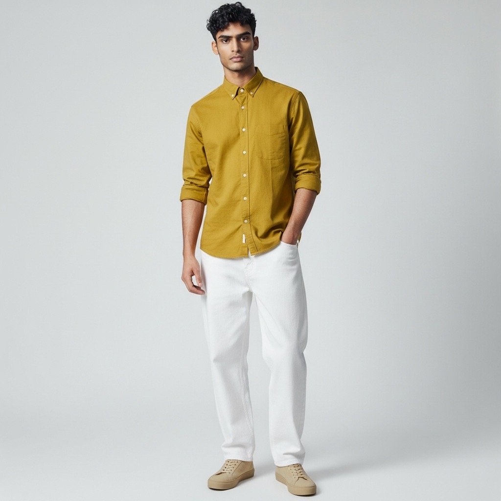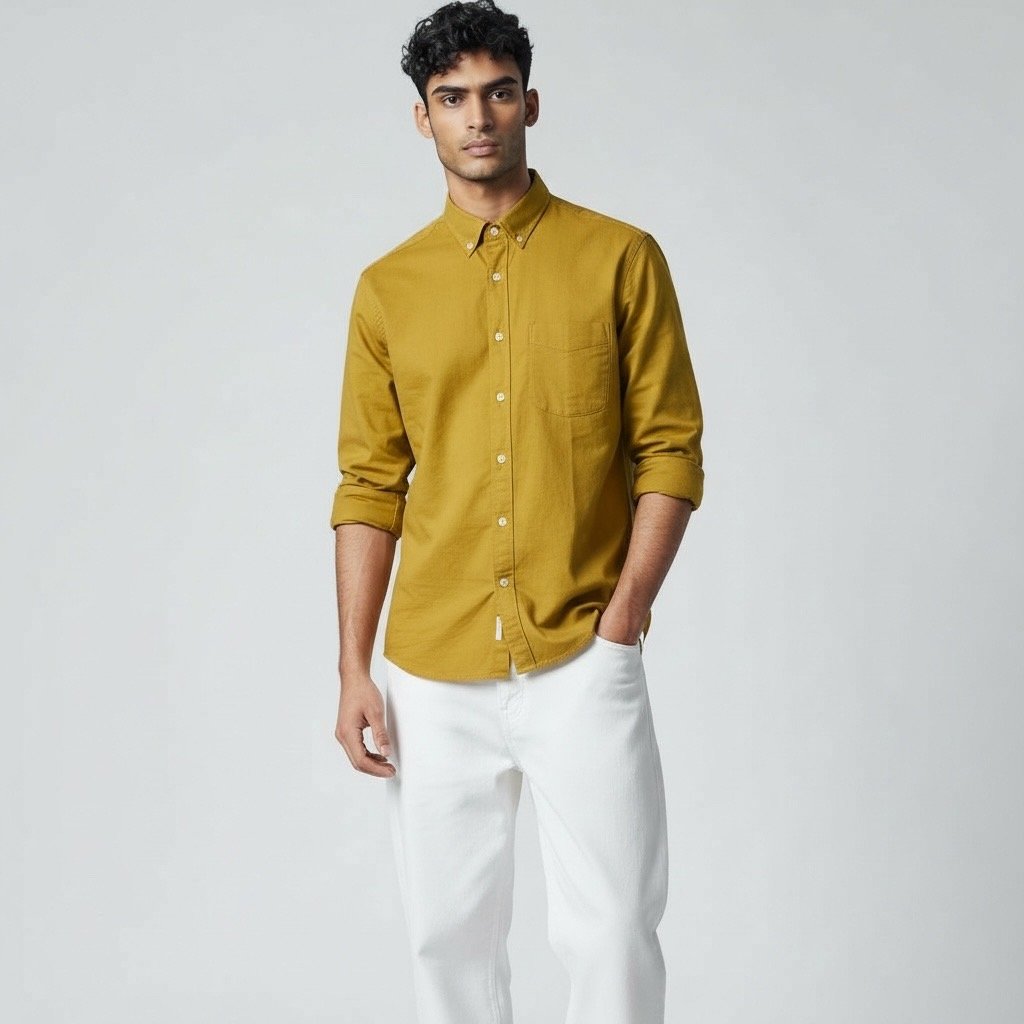 Solid Earth-Tone Button-Down Shirt – Men’s Relaxed Fit-001
