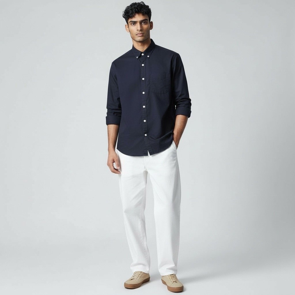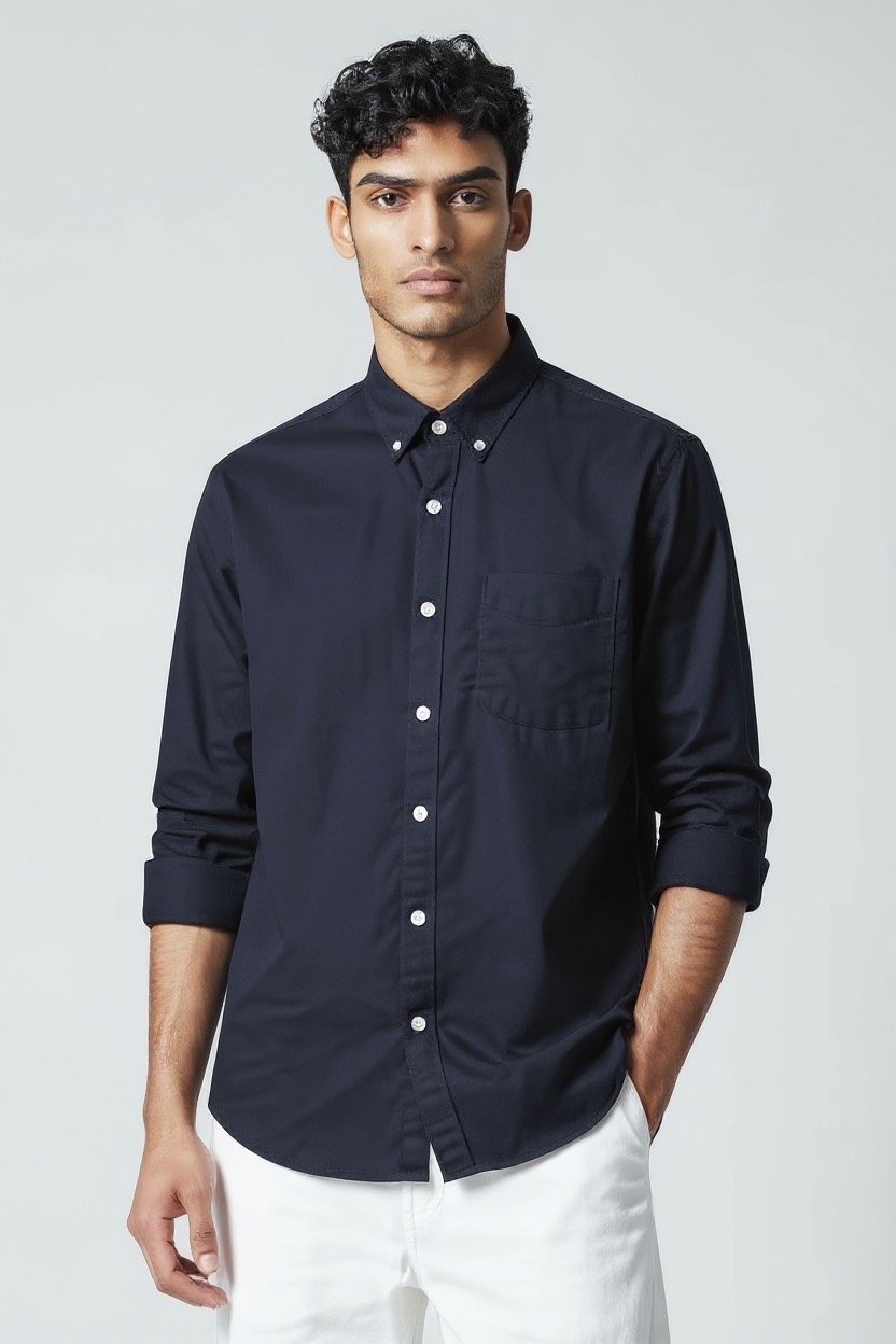 Solid Earth-Tone Button-Down Shirt – Men’s Relaxed Fit-007