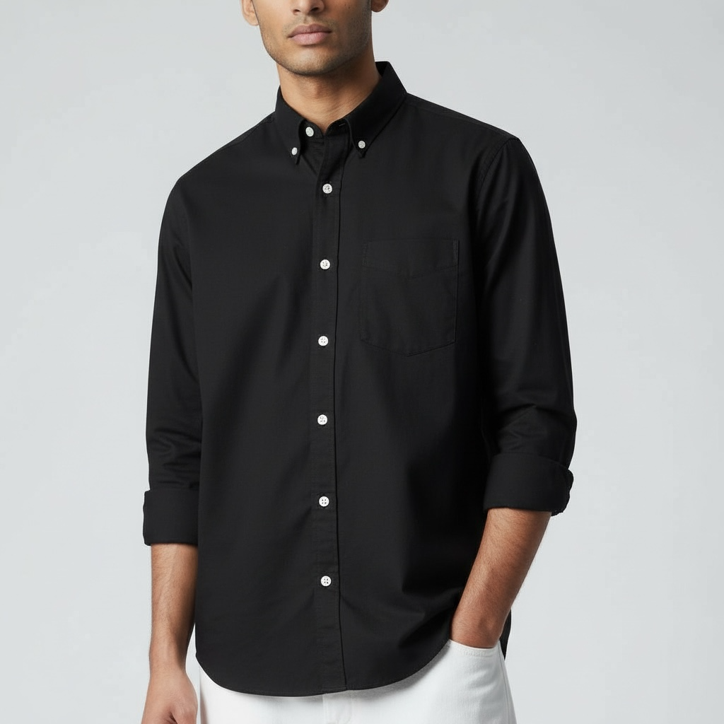 Solid Earth-Tone Button-Down Shirt – Men’s Relaxed Fit-008