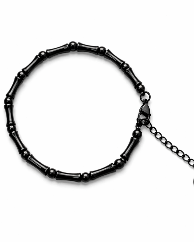 Men’s Black Stainless Steel Beaded Bracelet with Adjustable Chain-015
