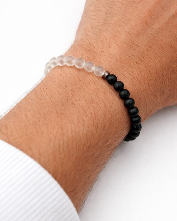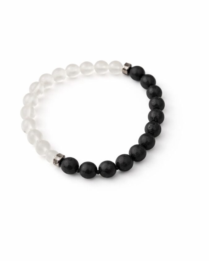 Men’s Black Lava Stone & Frosted White Bead Bracelet-008