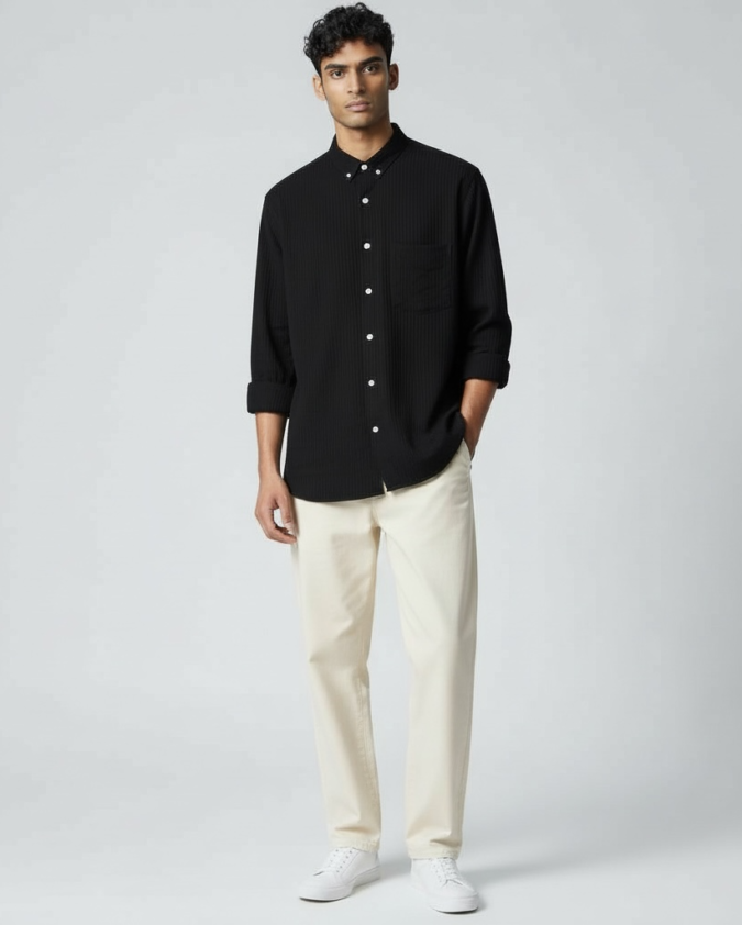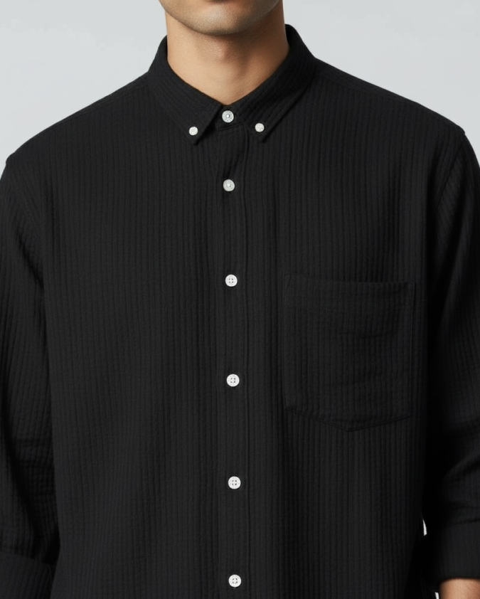 Men’s Black Textured Casual Shirt -L001