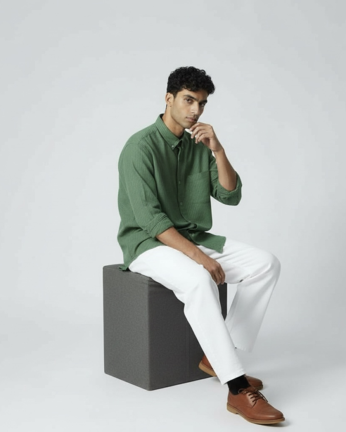 Men’s Mid Blue Distressed Denim Shirt – Full Sleeve Casual Shirt